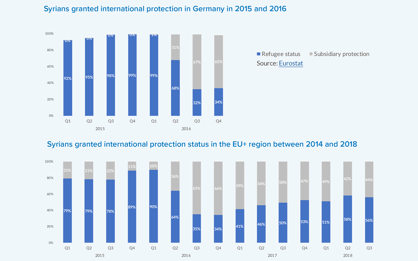 [70]UNHCR, Syrian refugees in Europe, July 2014, https://data2.unhcr.org/en/documents/download/41797; ECRE, Germany: Lesser standard of protection for people from Syria, Eritrea, Iraq and Afghanistan, 16 September 2016, https://www.ecre.org/germany-lesser-standard-of-protection-for-people-from-syria-eritrea-iraq-and-afghanistan/.
