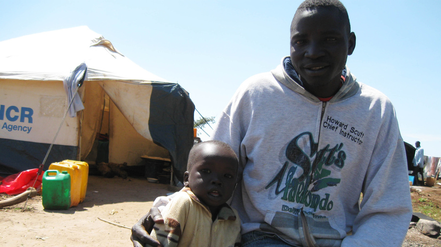Santino Samuel John et son fils Obama attendent que leurs proches rejoignent le camp de réfugiés de Tongo en Ethiopie, depuis le Soudan.