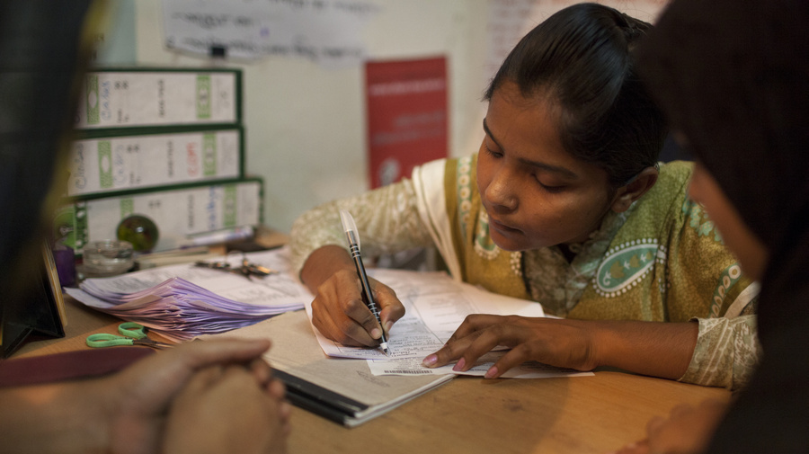 Nahid Parveen est une auxiliaire de justice ayant une formation de base en droit et médiation. Elle aide les locuteurs de langue ourdoue au Bangladesh à faire une demande pour obtenir des documents d'identité.