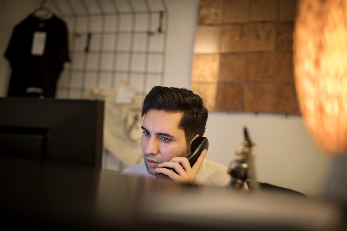 À la réception, Sharif — qui parle anglais, allemand et trois langues afghanes — est devenu multitâche. Il avait 14 ans quand il est arrivé à Vienne, avant la crise des réfugiés.