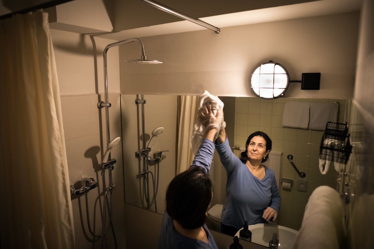 À mon réveil, l'aspirateur ronronne dans le couloir extérieur. Toita Monsarowa — une responsable de l'équipe de nettoyage qui a fui la Tchétchénie ravagée par la guerre en 2004 — travaille au Magdas depuis ses débuts.