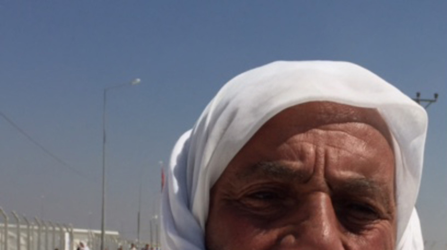 Abdoul Kade, 73 ans, est arrivé au camp il y a un mois. Il a fui son domicile à Raqaa lors de l'une des spirales de violences. Il a un fils âgé de six ans, Moustafa, et pour fuir, ils ont dû se cacher pendant trois jours.