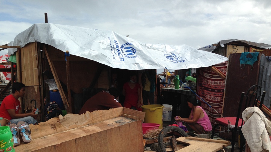 Des bâches du HCR pour abriter les rescapés du typhon Haiyan