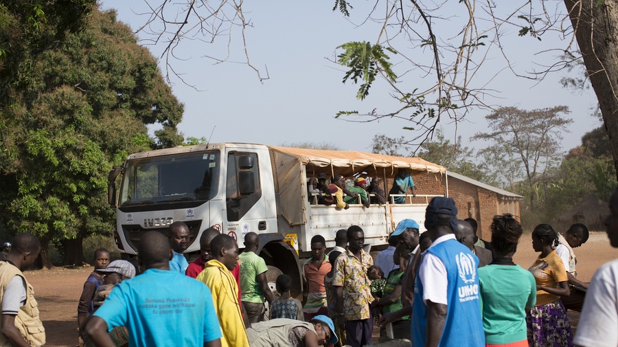 Un convoi humanitaire - protégé par des soldats armés des troupes de maintien de la paix - transportait un premier groupe de 30 réfugiés originaires de République démocratique du Congo depuis Ezo vers une nouvelle installation à Makpandu, une ville à 220 kilomètres vers l'est.