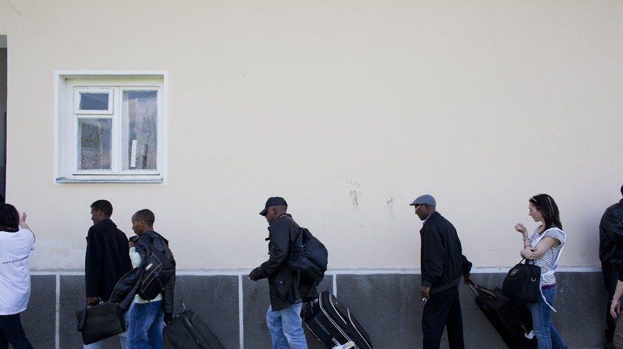 Des réfugiés érythréens arrivent au Centre de transit d'urgence en Roumanie depuis la Tunisie