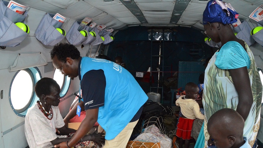 Maintenant, les réfugiés les plus vulnérables évitent ce pénible voyage, car ils sont transportés par l'hélicoptère affrété par le HCR avec l'appui de l'Organisation internationale pour les migrations (OIM), depuis Akobo vers l'hôpital d'urgence au camp de réfugiés de Leitchuor, et finalement à Kule II.