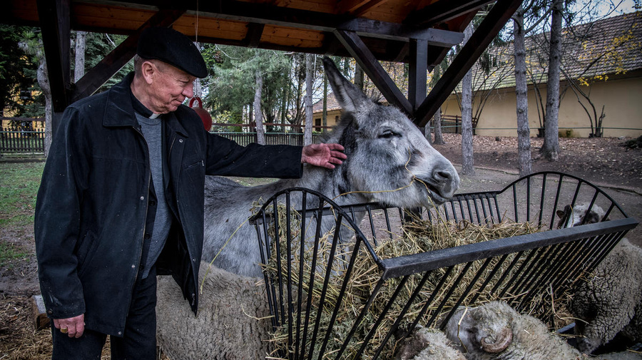 Miklos Beer, évêque de Vac, nourrit ses moutons et son âne, une scène qui évoque l’étable de Bethlehem. Mais ici, il y a plusieurs ‘chambres d'hôtes’. Miklos Beer a personnellement logé des réfugiés dans son évêché du nord de la Hongrie.