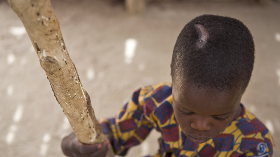Ibrahim a été hospitalisé à Koza au Cameroun et il lui a fallu quatre mois et demi pour se rétablir. « Les médecins et les infirmières étaient tendres avec moi et la nourriture était bonne », nous a-t-il confié. Après son congé de l'hôpital, la famille a déménagé au camp de Minawao, qui est situé à 90 kilomètres de la frontière. Quelque 33 000 réfugiés du Nigéria vivent maintenant dans ce camp, qui a ouvert ses portes en juillet 2013.