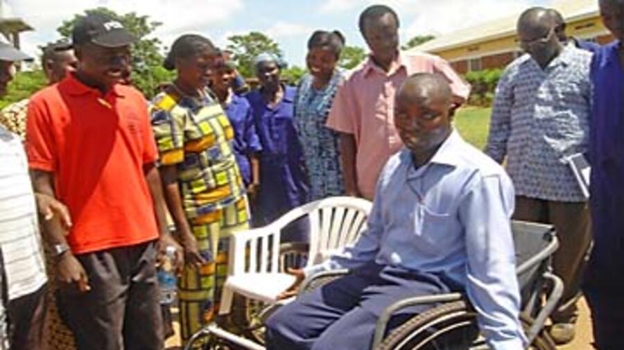 Les objets fabriqués par les étudiants ont été exposés dans une salle pendant la cérémonie de remise des prix le mois dernier, avec parmi eux deux sortes de fauteuil roulant, un pressoir à huile végétale, un presse-fruits, un casse-noix, des charrues et une pompe pour un puits. Tous ces articles ont été fabriqués à partir de ferraille de récupération, sur les conseils d'Apollo Twijukye, d'AAH.