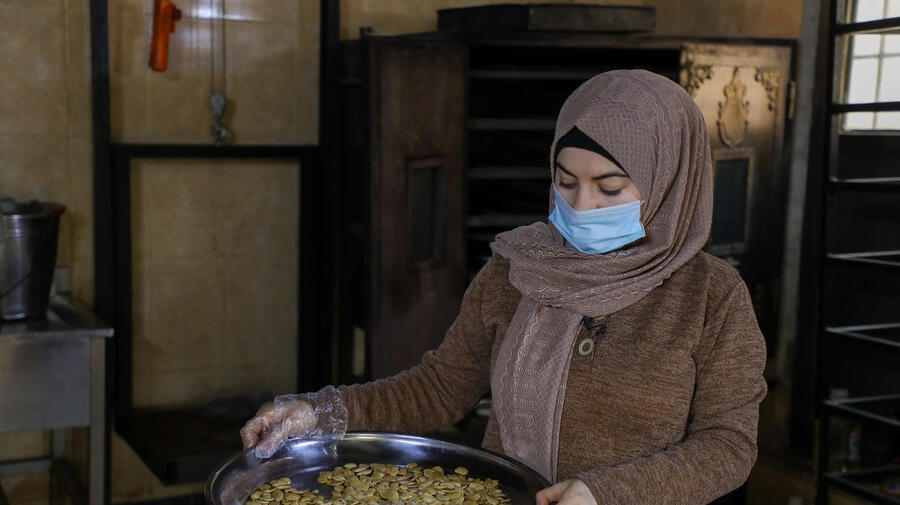 Bien qu'elle ne puisse pas travailler pendant le confinement, Tahani s'est inscrite à un programme de formation professionnelle facilité par le HCR et son partenaire local, la Jordan River Foundation (JRF). En août dernier, après avoir suivi deux mois de cours en ligne et avec l'aide de JRF, Tahani a trouvé du travail dans un restaurant local qui prépare le mansaf, le plat national jordanien d'agneau à cuisson lente avec du riz et du yaourt.