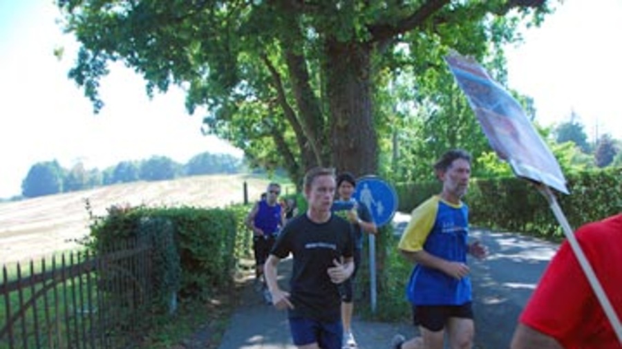 Peu après, la course de Genève a commencé sous un vent léger et un ciel clair. Un groupe de quelque 20 coureurs a démarré à toute vitesse, soucieux de brûler quelques calories au cours des 10 kilomètres de course, alors que le reste des participants descendait vers le lac à un rythme plus modéré. Une heure plus tard, ils avaient accompli leur B.A. de la journée et étaient de retour au HCR.