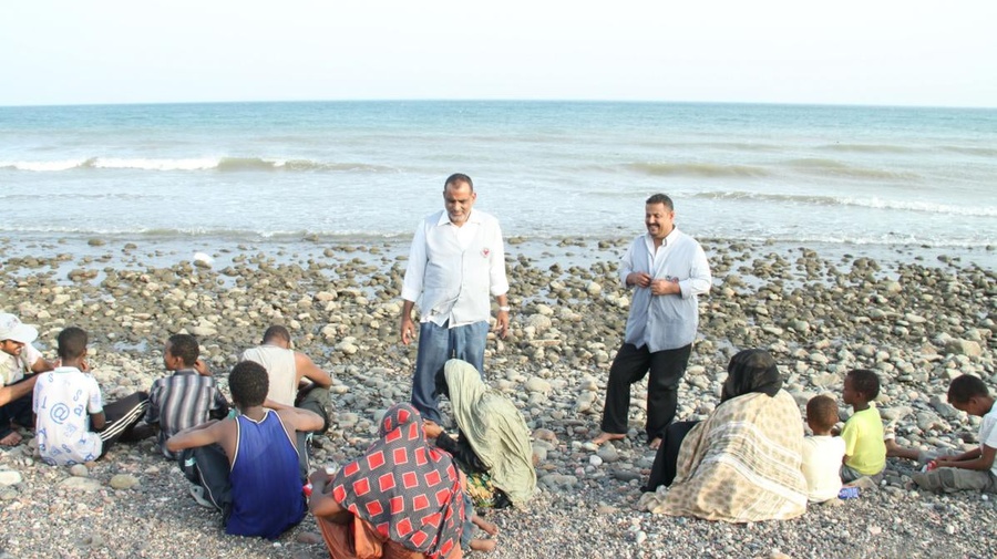Les réfugiés survivants sont plus tard transférés dans des centres de transit où ils peuvent se doucher, se reposer et recevoir d'autres soins médicaux plus approfondis si besoin. Parallèlement, notre bureau à Aden et les bureaux du HCR sur le terrain sont informés sur le nombre et le statut des arrivants… après trois ou quatre heures, les réfugiés sont transportés vers les centres d'enregistrement de Mayfa'a ou d'Ahoor. Le nombre des bateaux arrivant chaque jour s'élève parfois jusqu'à sept.