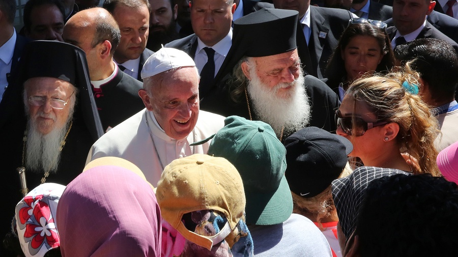 Accompagné pendant sa visite du patriarche oecuménique Bartholomée et de l'archevêque Hieronymos d'Athènes et de toute la Grèce, le pape François a appelé tous les dirigeants du monde à faire preuve de courage pour répondre à cette crise humanitaire massive et ses causes sous-jacentes. Il leur a également demandé d'assurer la protection des réfugiés qui fuient la guerre et la violence et de leur apporter des solutions durables.