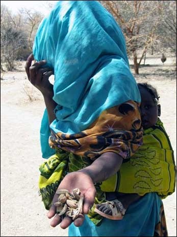 Zaïna Abakar, une veuve de 35 ans avec trois enfants, a raconté aux membres de l'équipe de Madame Chamberlin qu'elle, ainsi que d'autres personnes vivant dans le wadi, doivent manger des graines qu'elles trouvent sur le sol, graines si dures qu'elles doivent bouillir pendant trois jours.