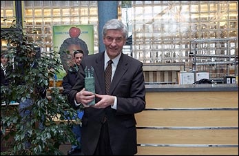 Les membres du personnel, rassemblés à tous les niveaux de l'atrium de sept étages, ont chaleureusement ovationné M. Lubbers pendant plusieurs minutes. Beaucoup avaient les larmes aux yeux.