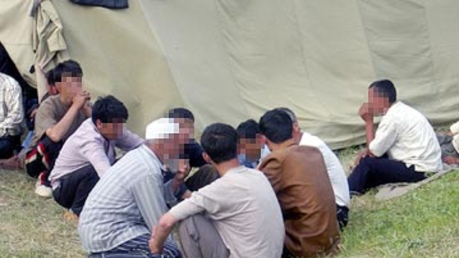 Des demandeurs d'asile ouzbeks au camp kirghize de Barash, près de la frontière. Ils ont depuis lors été transférés au nouveau camp de Sasyk, plus à l'intérieur du pays.