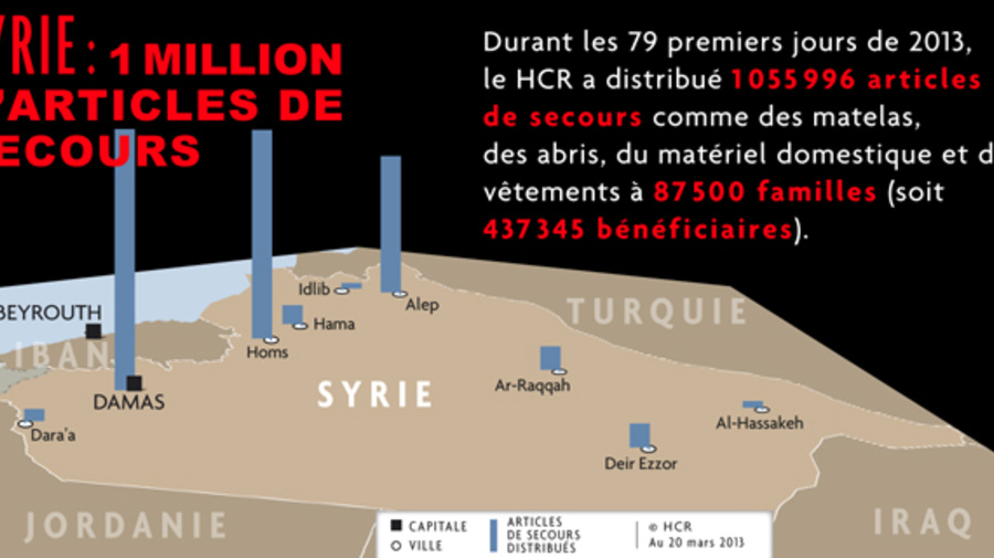 Cette année, le HCR a apporté des articles de secours à plus de 437 000 Syriens dans les provinces les plus touchées comme Alep, Al-Hassakeh, Raqqah, Damas, Dara'a, Feir Ezzor, Hama et Idlib.