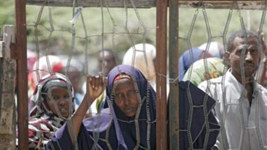 Ces Somaliens attendent leur tour au centre de distribution de l'UNHCR au sud de la capitale somalienne. L'UNHCR espère pouvoir assister 400 000 déplacés somaliens ayant fui la reprise du conflit.