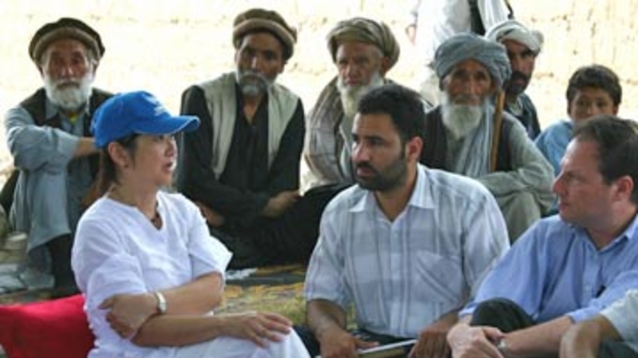 Judy Cheng-Hopkins, Haut Commissaire assistante pour les réfugiés, s'entretient avec des Afghans sur les problèmes que doivent surmonter les rapatriés.