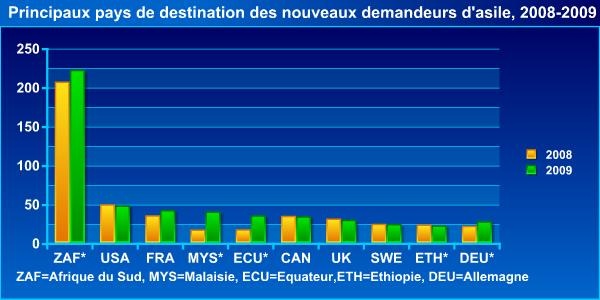 Principaux pays de destination des nouveaux demandeurs d'asile, 2008-2009