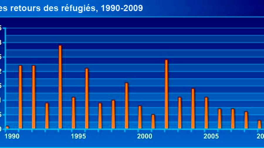 Le rapport du HCR révèle que seuls 251 000 réfugiés sont rentrés en 2009, soit le chiffre le plus faible enregistré depuis 1990. Ce chiffre est à considérer en regard de la norme établie au cours de la dernière décennie, soit environ 1 million de rapatriés chaque année.