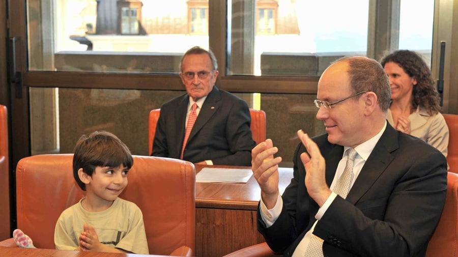 Le Prince Albert de Monaco rend visite à un enfant iraquien en convalescence après une opération du coeur à Monte Carlo, rendue possible grâce à un accord avec le HCR.