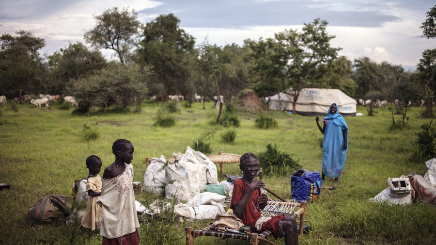 Une famille de réfugiés soudanais dans un camp au Soudan du Sud, au début de cette année. La générosité des donateurs permettra d'aider d'autres personnes comme eux, dans le cadre de crises majeures de déplacements de populations.