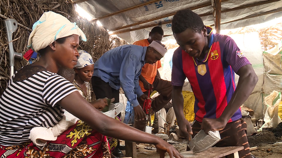 Dans une case de fortune, ils font fondre le métal dans une casserole chauffée au feu avant de le verser dans des moules d'argile. Ils fabriquent ainsi des casseroles de tailles diverses, des fers plats et même des gaufriers. La vente de ces articles rapporte aux réfugiés tels que Dorothée assez d'argent pour acheter des vêtements et de la nourriture. « Au Burundi, je ne savais pas fabriquer des casseroles. Je gagne un peu d'argent ici et ça nous permet d'avancer. »