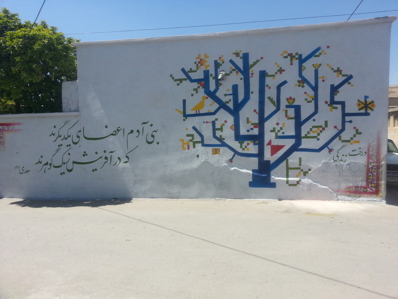Les graffitis haineux ont été rapidement remplacés par des peintures murales savamment décorées de motifs provenant de tapis iraniens et afghans, ainsi que d'autres symbolisant l'harmonie partagée. Alireza, un participant âgé de 13 ans, a peint sa fresque murale préférée, un grand arbre avec des branches évasées à côté d'un texte en farsi indiquant: « Les fils d'Adam sont tous membres de la même famille, ils ont été créés à partir d'une seule essence. »
