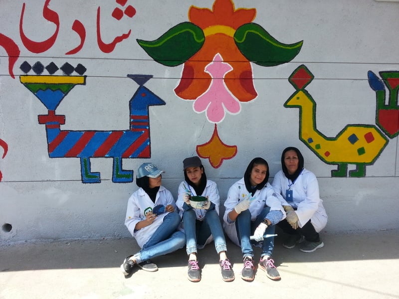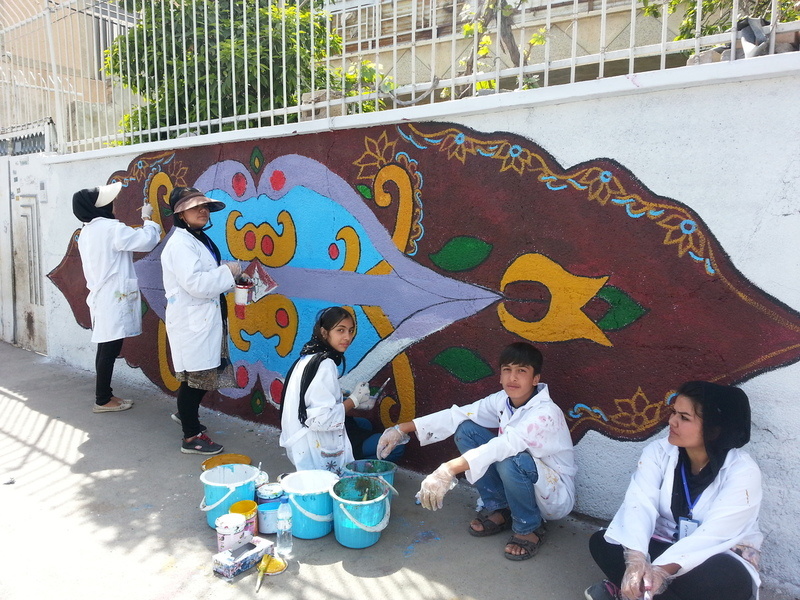 Afin de responsabiliser les résidents, le HCR et le gouvernement iranien ont fait travailler tous ensemble des artistes locaux et plus de 60 bénévoles de la communauté pour concevoir et mettre en œuvre un projet « de nettoyage et de peinture ».