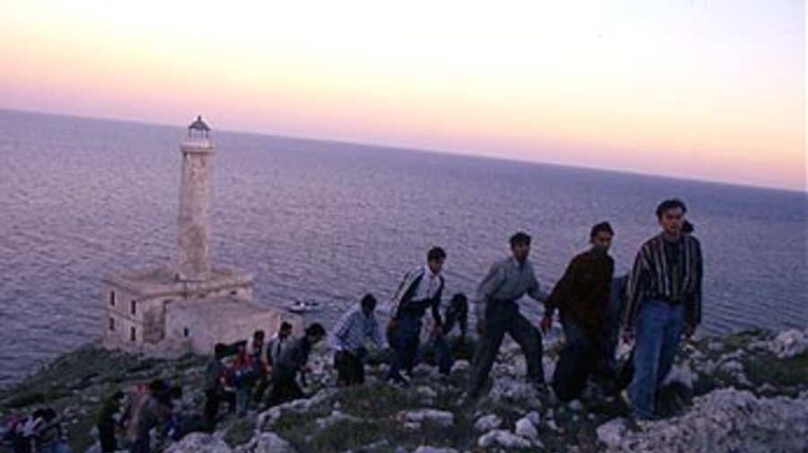 Des boat-people arrivant au Cap Otranto sur la côte est de l'Italie.