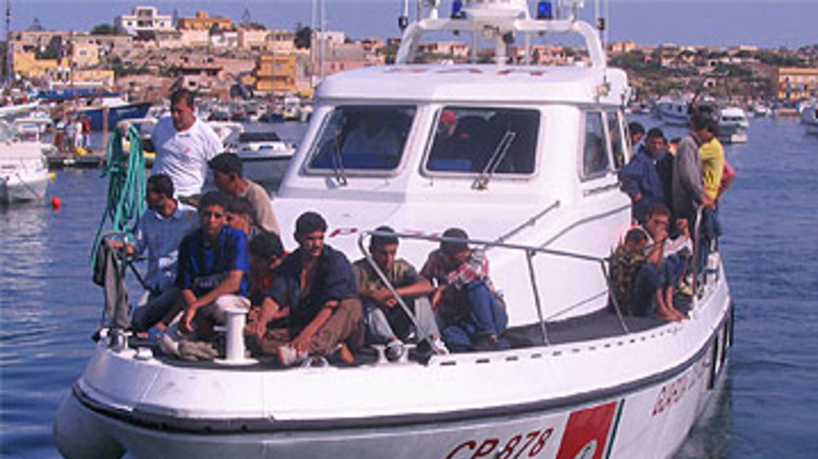 Un groupe de boat people dont l'embarcation a été interceptée par les garde-côtes italiens au large de l'île de Lampedusa. De plus en plus de personnes périssent lors de ces longues traversées en mer.