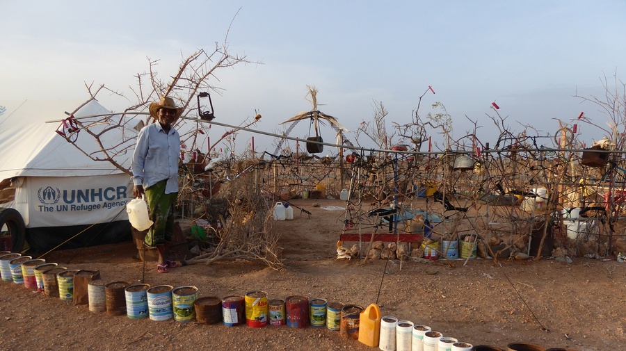 Ici au camp de Markazi, Abdillahi et son « musée des curiosités » sont très connus. Des branchages torsadés jonchent le sol à côté des os blanchis d'animaux morts depuis longtemps. Il y a des pierres et des graines, une vieille éponge, des coquillages, une petite poupée, une cuillère en bois, des insignes, des épinglettes et même un vieux casque de soldat.