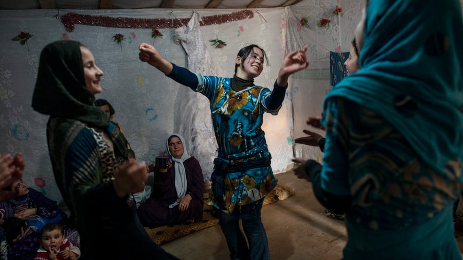 MARJ EL-KHOKH, Liban, 15 mai (HCR) - Dans l'arrière-salle d'une vaste tente fabriquée par ses occupants, Yousra est maquillée et coiffée. Cela prendra toute l'après-midi. Dans le salon, ses amies dansent.