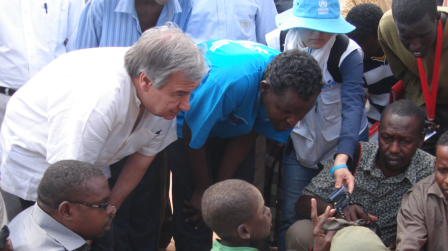 António Guterres a écouté une réfugiée témoigner de sa fuite depuis la Somalie durant laquelle elle a dû marcher pendant des semaines. Trois de ses enfants ont trouvé la mort durant ce trajet. « J'ai cru devenir folle après le décès de trois de mes enfants », lui a expliqué Musleema Aden. « J'ai perdu mes enfants à différentes périodes du voyage. »