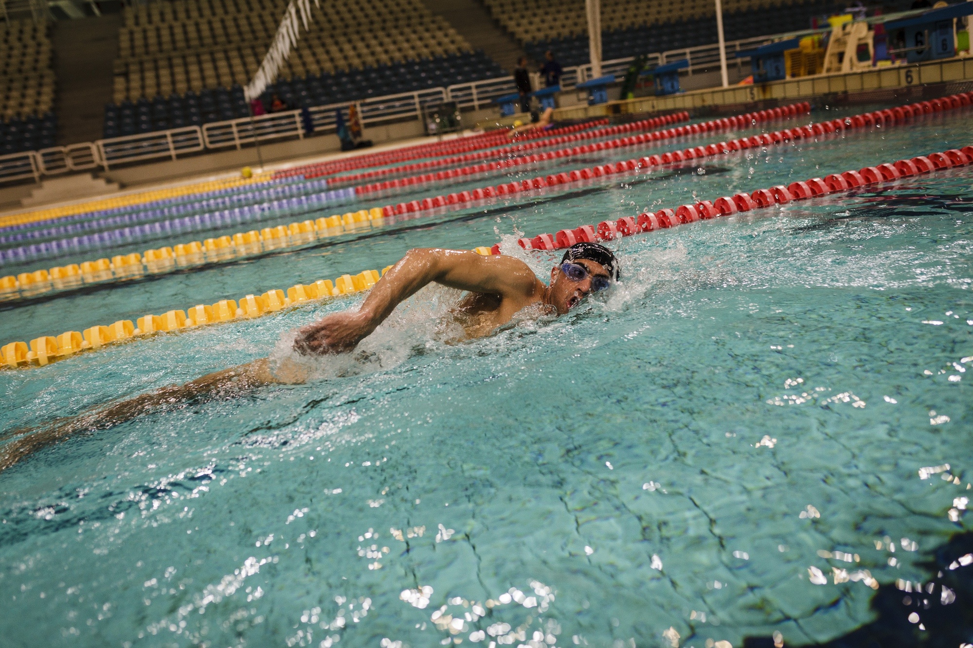 Ibrahim al-Hussein, 27 ans, pendant un entrainement de natation à Athènes.