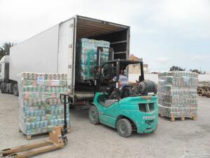 Des employés du HCR et du Croissant-Rouge tunisien distribuent des appareils de chauffage aux résidents d'un foyer pour demandeurs d'asile et réfugiés, en majorité originaires de pays africains, dans la ville de Medenine afin de leur offrir le plus de confort possible pour les mois d'hiver. Des couettes et des bons à échanger contre des vêtements chauds ont également été fournis. © HCR / Francis Markus