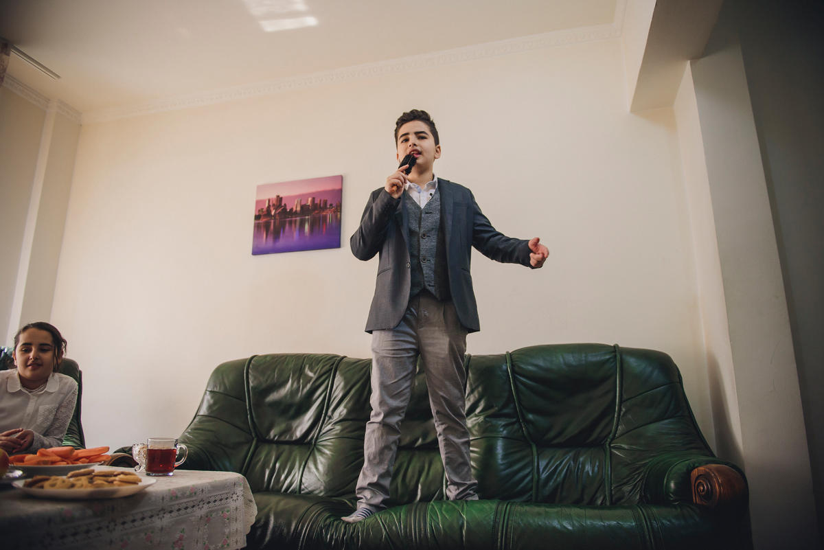 L'époux de Lina, Jihad, 46 ans, travaille dans la vente de textiles. Sa fille aînée, Budur, 22 ans, et son fils, Abdul, 20 ans, sont à l'université, la première en médecine et le fils en génie civil. Les grands-parents sont tranquillement installés au fond de la salle de séjour à regarder jouer Kaisar, trois ans qui est né en Roumanie.