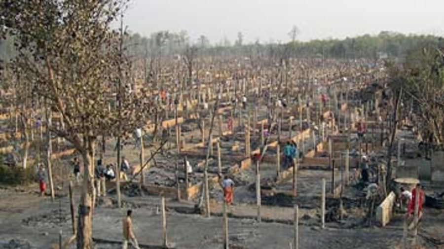 Les flammes ont détruit la majorité des huttes, au camp de réfugiés de Goldhap, au Népal.