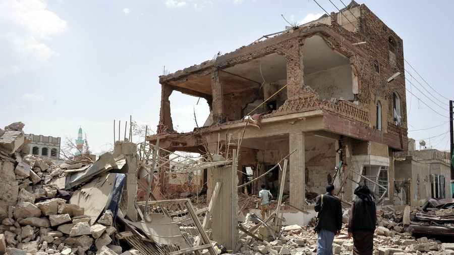 Des bombardements ont détruit des bâtiments à travers le Yémen, comme ces zones résidentielles de la région de Hashish vers Sanaa, la capitale, le 3 juillet 2015.