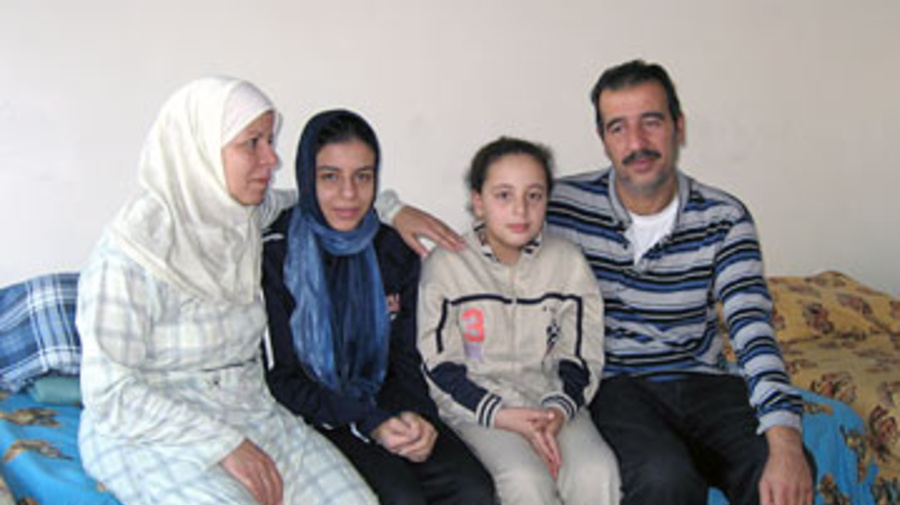 Labiba Eisa, ici avec son mari et deux de ses enfants, a quitté les conditions de vie difficiles d'un camp dans le désert jordanien pour le confort d'un nouveau logement à Ottawa, la capitale du Canada.