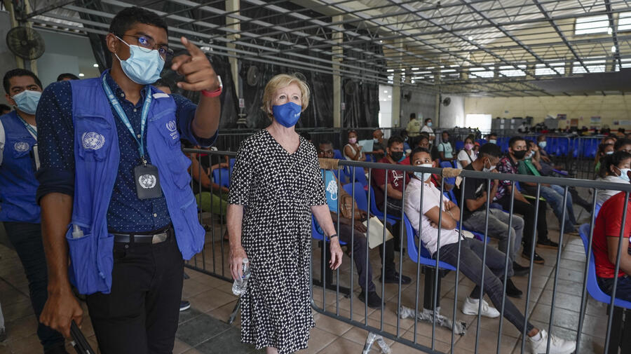 La Haut Commissaire assistante du HCR chargée de la protection internationale, Gillian Triggs, visite un centre d'accueil pour réfugiés dans la ville de Tapachula, au sud du Mexique.