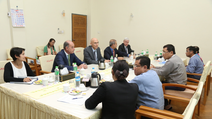 M. Türk s’est rendu à Naypyidaw, la capitale du Myanmar, où il a rencontré U Kyaw Tint Swe, ministre du Bureau des conseillers d'État, U Thaung Tun, conseiller à la Sécurité nationale, Dr. Win Myat Aye, ministre de la Protection sociale, des Secours et de la Réinstallation, et U Thein Swe, ministre du Travail, de l'Immigration et de la Population.