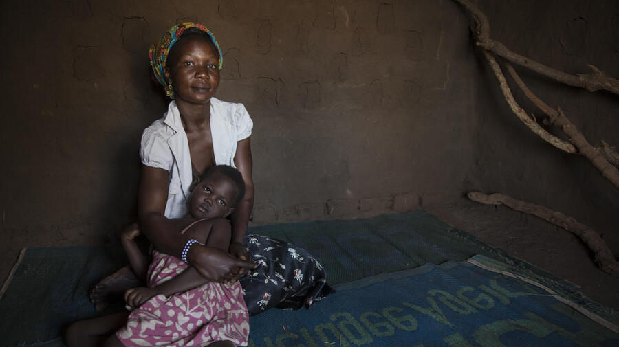 Une mère réfugiée sud-soudanaise et son enfant à l'installation de réfugiés de Bidibidi en Ouganda. Avril 2017.