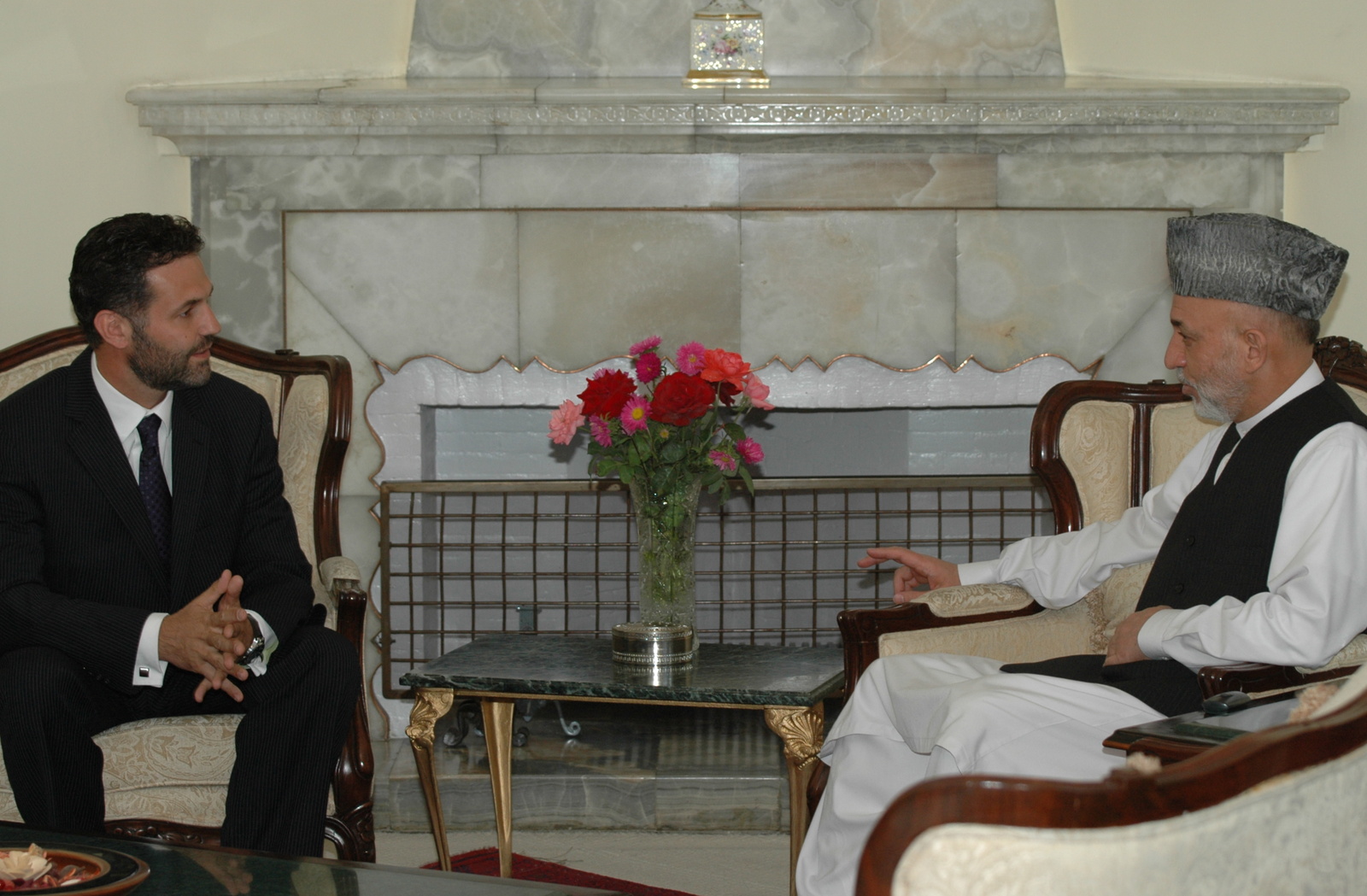 Lors de sa rencontre avec le Président afghan Hamid Karzai, Khaled Hosseini a évoqué les conditions de vie qu'il a pu constater dans des sites hébergeant des rapatriés.