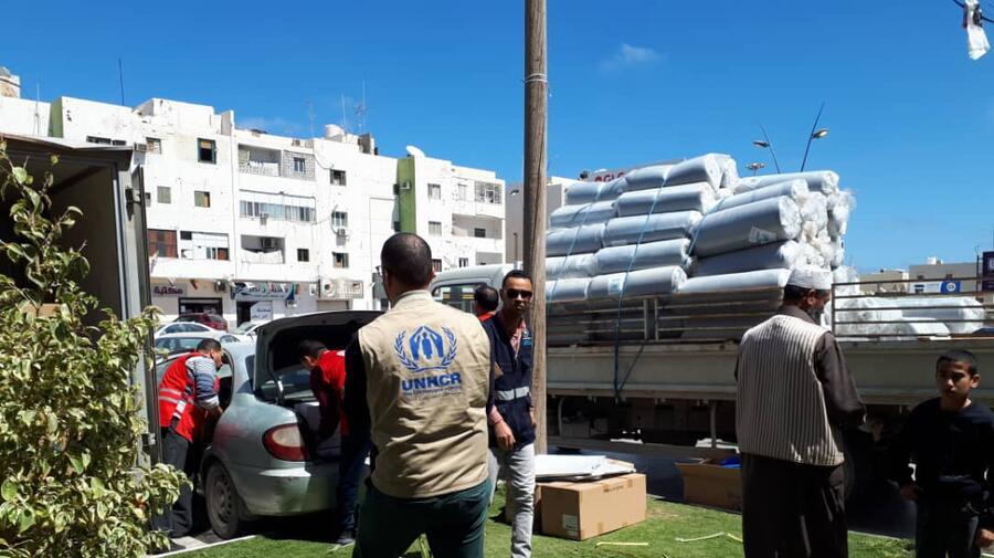 Le HCR, avec son partenaire Libaid et d'autres organisations locales, a également livré des couvertures, des matelas, des lampes à énergie solaire, des ustensiles de cuisine, des seaux et d'autres articles de secours à 6200 personnes déplacées qui ont trouvé refuge dans des abris collectifs et en milieu urbain à Tripoli, Azzawya, Sabratha, Garabulli et Misrata.