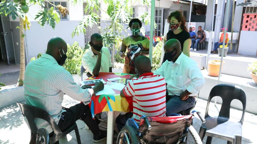 L’ONG Associazione Italiana Amici de Raoul Follereau (AIFO) et des membres de la communauté discutent de la manière de signaler les cas d’EAS, Mozambique. © UNHCR