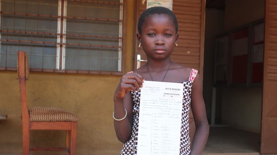 NATITINGOU (Bénin), 25 février 2016 (HCR) - Juliette, 10 ans, exhibe avec fierté l'extrait d'acte de naissance que lui a délivré le Président du tribunal de Natitingou, une ville située à 700 kilomètres de Cotonou, la capitale du Bénin.