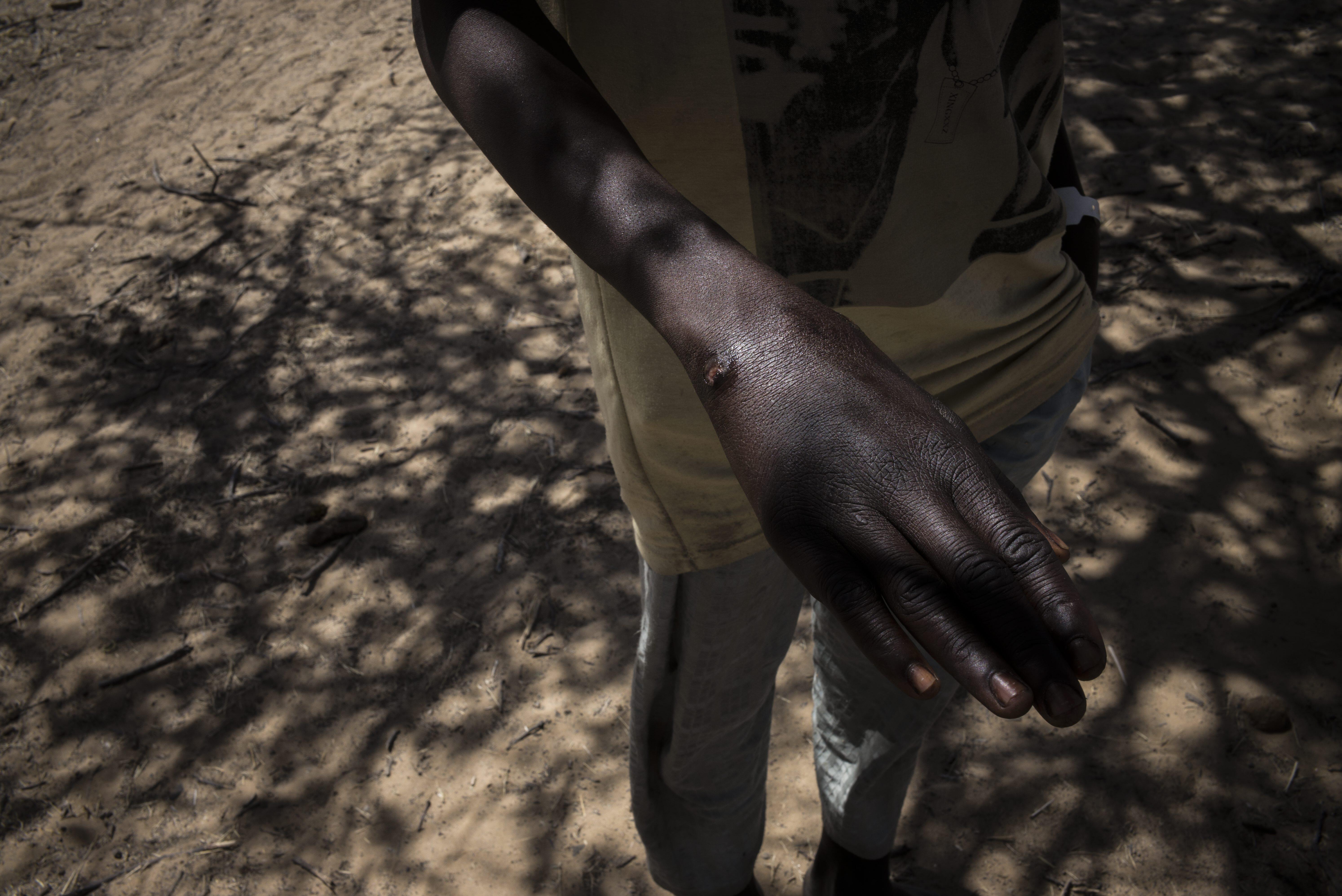 Une balle a traversé le poignet d'Alhaji pendant l'attaque sur Baga, au Nigéria, le 3 janvier 2015. Neuf autres jeunes homes ont été exécutés au cours de l'attaque, dit-il.