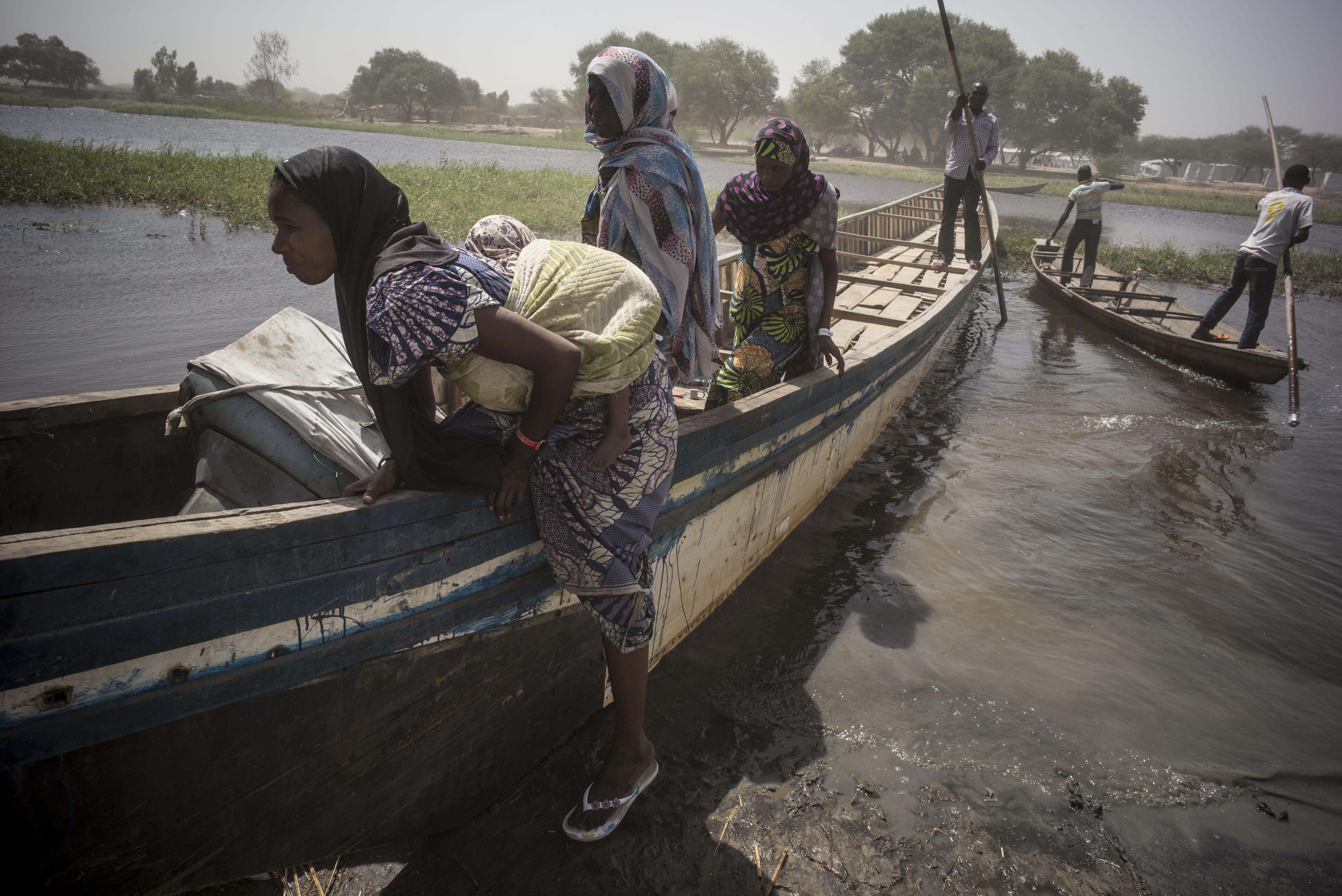 Des réfugiés nigérians débarquent d'un canoé qui les a acheminés de Ngouboua à Baga Sola, au Tchad. Deux jours après, une attaque sur Ngouboua a tué 10 personnes.
